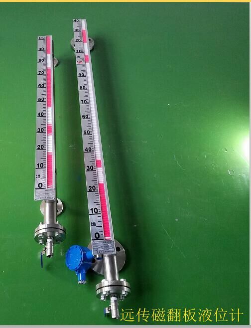 磁翻板液位計工作原理是基于磁耦合的物理特性,測量主體金屬內(nèi)腔管外的翻板箱受主體內(nèi)浮子(具有定向磁性源,按不同介質(zhì)和壓力針對研制)的作用促其翻板翻動并顯示紅白顏色,并隨浮子的移動指示不同的液面高度。在指示器左側(cè)配有醒目的刻度標(biāo)尺,從而使液位的指示顯得更加清晰。SUB-UHZ磁翻板液位計由本體、翻板箱(由紅、白雙色磁性小翻板組成)、浮子、法蘭蓋等組成,用于各類液體容器的液位測量。