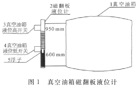 4月18日24:00,真空油箱油位低信號發(fā)出,密封油真空泵磁翻板無液位顯示,檢查確認浮子已在液位筒底部。此時真空油箱實際油位950mm。