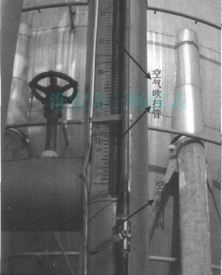 為了保證乙烯球罐安全穩(wěn)定運行,投用初期磁翻板液面計結(jié)冰就很嚴重,開始以為是由于施工時保冷材料沒有安裝好、保冷材料的厚度不夠等原因造成的,因此對保冷材料全部重新安裝并增加了保冷材料的厚度,但效果不明顯。后又組織崗位操作工對耐酸堿磁翻板液位計上的冰定期進行人工清理,由于乙烯球罐容積大(1500m³),液位計長約12米,清理難度非常大,在清除作業(yè)過程中涉及高空等危險作業(yè),增加了員工的工作危險性和勞動強度,而且經(jīng)過人工清理的液位計在運行3~4小時后,又開始掛霜結(jié)冰,運行周期太短。另外每次在清除結(jié)冰的過程中,都會對磁翻板液面計和閥座有所損傷,*終可導致磁翻板液面計損壞報廢。后來又嘗試切斷液面計根部閥切斷,采用自然化冰的方式來清除掛冰,這樣雖然減小了操作工的勞動強度,但這種辦法除冰時間太長,對安全生產(chǎn)不利。為了徹底解決磁翻板掛冰的現(xiàn)象,經(jīng)過反復論證,技術(shù)人員提出用工廠空氣進行吹掃的方案并在其中一具乙烯球罐上進行試驗。通過試驗發(fā)現(xiàn)用工廠空氣連續(xù)吹掃掛冰的液位計,基本能夠徹底解決耐酸堿磁翻板液位計掛冰。