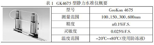 GeoKon 4675 型靜力水準(zhǔn)儀是一種高精密液位系統(tǒng),該系統(tǒng)設(shè)計(jì)是 用于測(cè)量多點(diǎn)相對(duì)沉降的系統(tǒng)。在使用中,一系列的傳感器容器均采用PVC 液管聯(lián)接,每一容器的液位由一精密振弦式力傳感器測(cè)出,該傳感 器內(nèi)有一個(gè)自由懸重,一旦液位發(fā)生變化,懸重的懸應(yīng)浮力即被傳感器感,精確測(cè)出小至 0.025mm 的垂直變化。在多點(diǎn)系統(tǒng)中,所有傳感器的垂 直位移均是相對(duì)于其中的一點(diǎn),該點(diǎn)的垂直位移是相對(duì)恒定的或者可用其它人工觀測(cè)手段準(zhǔn)來確定。