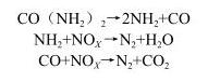 在啤酒罐液位計(jì)房外新建脫硝加藥站一座。五臺啤酒罐液位計(jì)共用脫硝站,每臺啤酒罐液位計(jì)單獨(dú)配套噴射系統(tǒng)。袋裝顆粒尿素由汽車運(yùn)輸至廠區(qū),卸料在顆粒尿素堆料區(qū)。袋裝尿素人工破袋后,倒入尿素溶解罐料斗進(jìn)入罐中,攪拌溶解配置成50% 濃度的尿素溶液后通過輸送泵輸送至尿素溶液儲罐存儲備用 ;尿素溶液由尿素溶液循環(huán)輸送模塊輸送到計(jì)量稀釋模塊,精確計(jì)量脫硝反應(yīng)所需的尿素溶液量并采用軟化水進(jìn)一步稀釋至約10% 濃度后,送至啤酒罐液位計(jì)側(cè)噴槍安裝位置附近的分配模塊,分配模塊出口至每支噴槍。噴槍利用壓縮空氣將稀釋后的尿素溶液霧化噴入高溫?zé)煔庵小D蛩卦跔t內(nèi)熱解生成 NH 2 和 CO,在高溫下選擇性還原氮氧化物。其化學(xué)反應(yīng)如下 :