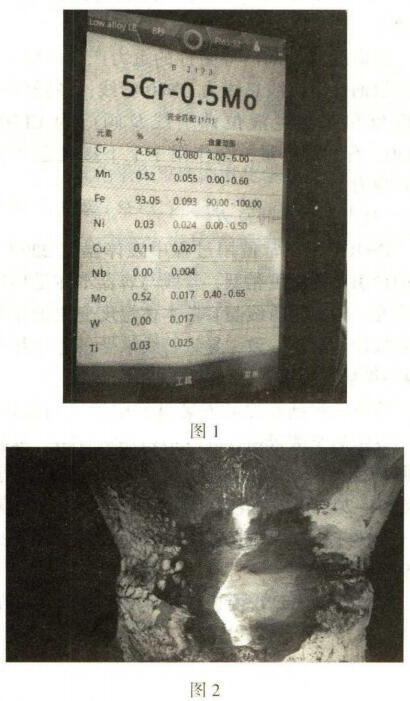 (1)對(duì)該段管線進(jìn)行能譜檢測(cè),確認(rèn)該管線材質(zhì)為lCr5Mo,管線材質(zhì)無(wú)問(wèn)題。