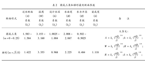 此外,U 型非常好的斷面為圓底直角時,設(shè)計水位線上在圓心上。斷面參數(shù)見表 2。