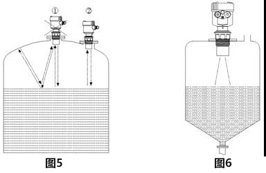 6、對(duì)于頂部為平面的錐形容器,污水池液位計(jì)應(yīng)盡量安裝在頂部中央,這樣可以保證測(cè)量到容器底部,如圖6所示。