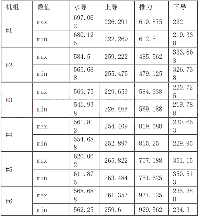 (1)從以上計算分析,數(shù)據(jù)沒有明顯的規(guī)律,主要的原因是每臺機的軸承油位傳感器安裝位置、傳感器本身的測量誤差、油槽內部油流大小擾動等因素,影響各部軸承的油位數(shù)值,從而沒有很接近的數(shù)值變化規(guī)律,建議對油槽油位傳感器的零位進行校核,對精度不夠的傳感器進行更換。